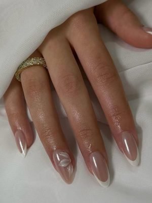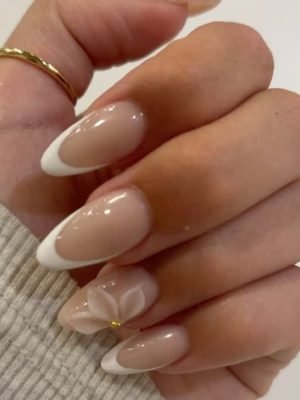 Ongles French Nude avec Fleur 3D – Élégance Chic