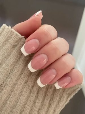 Ongles French Nude Carrés – Faux Ongles Élégants