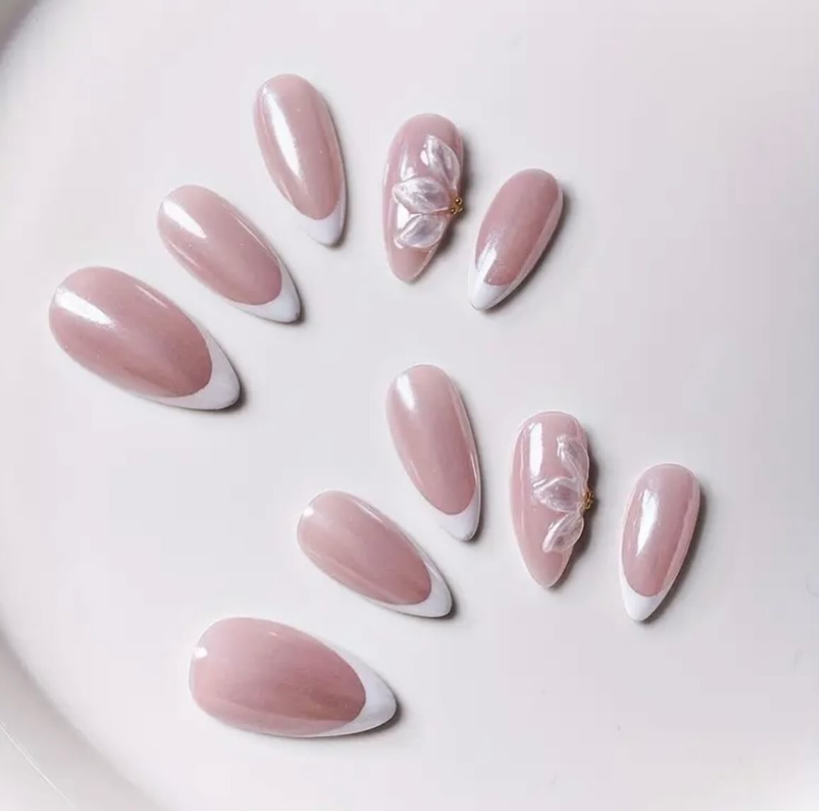 Style : French nude avec fleur 3D